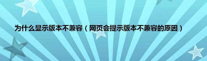 欢迎观看本篇文章,小升来为大家解答以上问题。为什么显示版本不兼容,网页会提示版本不兼容的原因很多人还不知道,现在让我们一起来看看吧!