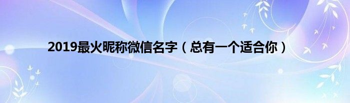 欢迎观看本篇文章,小升来为大家解答以上问题。2019最火昵称微信名字,总有一个适合你很多人还不知道,现在让我们一起来看看吧!