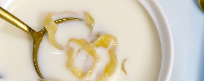 花胶炖牛奶里面不放小豆,也不放黑米,原材料只有花胶、纯牛奶、冰糖。花胶炖牛奶是以花胶、纯牛奶为主料的食品。50克花胶采用最原始的泡发方法,冷水浸泡至软。冬天隔8小时左右换一次水;夏天隔4小时左右换一次水,晚上可放入冰箱泡。把血丝、油脂洗干净,切好。焯水1分钟后捞起,放入炖盅备用。炖盅倒入小碗开水,不要太多,没过花胶即可,隔水炖约75分钟。最后加入250ml纯牛奶和适量冰糖,再炖约15分钟即可。