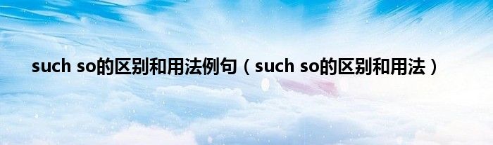 大家好,小问来为大家解答以上问题。such so的区别和用法例句,such so的区别和用法这个很多人还不知道,现在让我们一起来看看吧!
