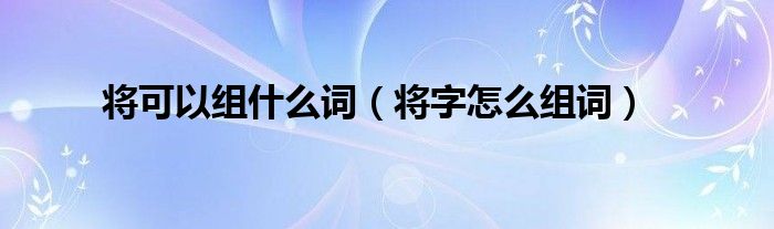 欢迎观看本篇文章,小升来为大家解答以上问题。将可以组什么词,将字怎么组词很多人还不知道,现在让我们一起来看看吧!