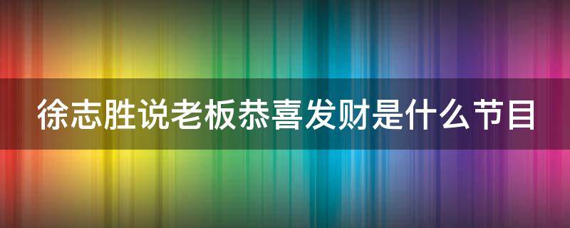 徐志胜说老板恭喜发财是脱口秀大会。徐志胜是《脱口秀大会》节目当中的嘉宾,在这个节目当中对恭喜发财以及领导进行了吐槽,引起了很多观众的爆笑。《脱口秀大会》是由腾讯视频出品,企鹅影视、上海笑果文化传媒有限公司联合出品的脱口秀竞技节目。节目根据每期节目话题,以不同的视角切入,用专业的喜剧创作能力进行高质量的内容输出,满足观众的信息需求,同台较量,争夺年度脱口秀大王桂冠。《脱口秀大会》包括:《脱口秀大会第一季》《脱口秀大会第二季》《脱口秀大会第三季》《脱口秀大会第四季》《脱口秀大会第五季》。