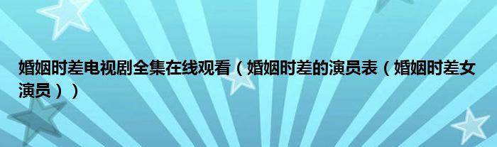 婚姻时差电视剧全集在线观看(婚姻时差的演员表(婚姻时差女演员))