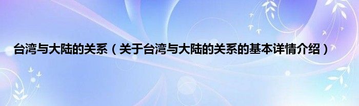台湾与大陆的关系(关于台湾与大陆的关系的基本详情介绍)