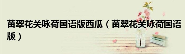 苗翠花关咏荷国语版西瓜(苗翠花关咏荷国语版)