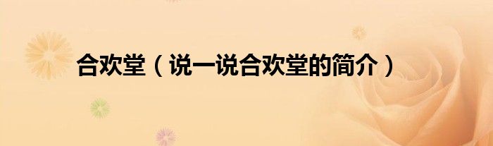 夏弥来为大家解答以下的问题,合欢堂,说一说合欢堂的简介,现在让我们一起来看看吧!