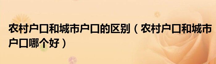 农村户口和城市户口的区别(农村户口和城市户口哪个好)