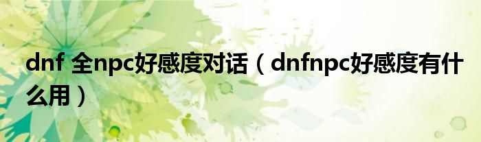 关于dnf 全npc好感度对话,dnfnpc好感度有什么用这个很多人还不知道,今天菲菲来为大家解答以上的问题,现在让我们一起来看看吧!