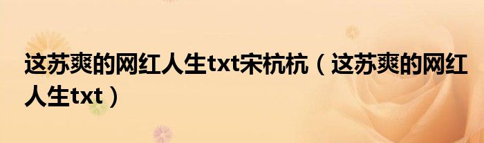 这苏爽的网红人生txt宋杭杭(这苏爽的网红人生txt)