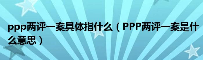 关于ppp两评一案具体指什么,PPP两评一案是什么意思这个很多人还不知道,今天菲菲来为大家解答以上的问题,现在让我们一起来看看吧!