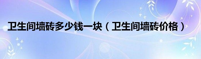 关于卫生间墙砖多少钱一块,卫生间墙砖价格这个很多人还不知道,今天菲菲来为大家解答以上的问题,现在让我们一起来看看吧!