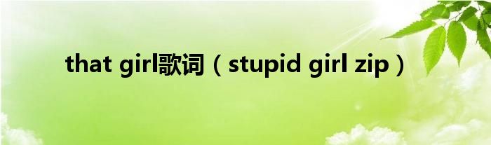 关于that girl歌词,stupid girl zip这个很多人还不知道,今天菲菲来为大家解答以上的问题,现在让我们一起来看看吧!