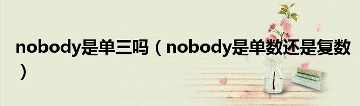 大家好,乐儿来为大家解答以下问题,nobody是单三吗,nobody是单数还是复数很多人还不知道,现在让我们一起来看看吧!