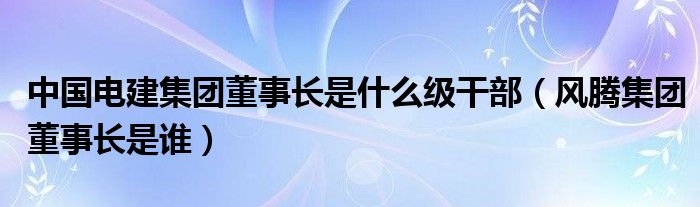 关于中国电建集团董事长是什么级干部,风腾集团董事长是谁这个很多人还不知道,今天菲菲来为大家解答以上的问题,现在让我们一起来看看吧!