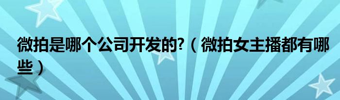 关于微拍是哪个公司开发的?,微拍女主播都有哪些这个很多人还不知道,今天菲菲来为大家解答以上的问题,现在让我们一起来看看吧!