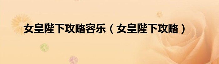 女皇陛下攻略容乐(女皇陛下攻略)