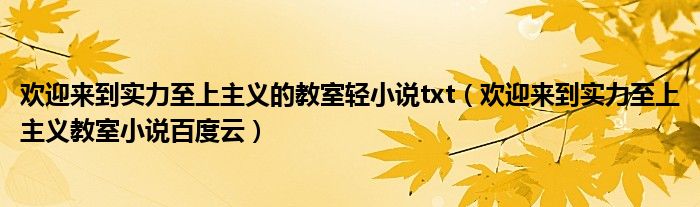 关于欢迎来到实力至上主义的教室轻小说txt,欢迎来到实力至上主义教室小说百度云这个很多人还不知道,今天菲菲来为大家解答以上的问题,现在让我们一起来看看吧!