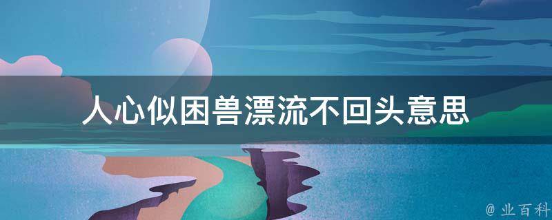 人心似困兽漂流不回头的意思是人的内心压抑的很厉害,像一只被困住的野兽,希望能够到处走一走。这句话表达的情感比较内敛,写出了对自由、无忧无虑生活的向往,也体现了生活的处境比较有压力。
