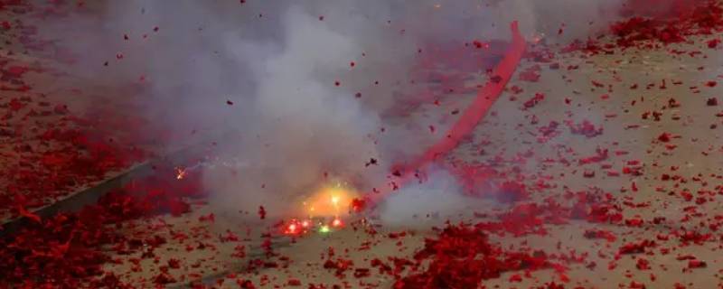 3、大地红:常见的一种鞭炮,由许多小鞭炮组成,一般都有2米到3米长。