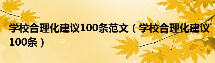 大家好,小华来为大家解答以上的问题。学校合理化建议100条范文,学校合理化建议100条这个很多人还不知道,现在让我们一起来看看吧!