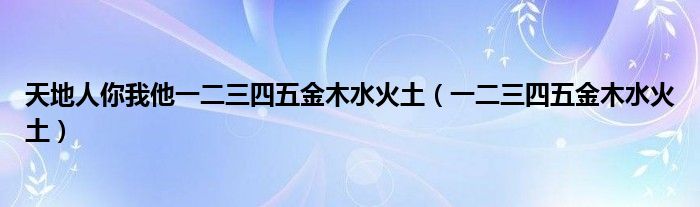 大家好,小联来为大家解答以上的问题。天地人你我他一二三四五金木水火土,一二三四五金木水火土这个很多人还不知道,现在让我们一起来看看吧!