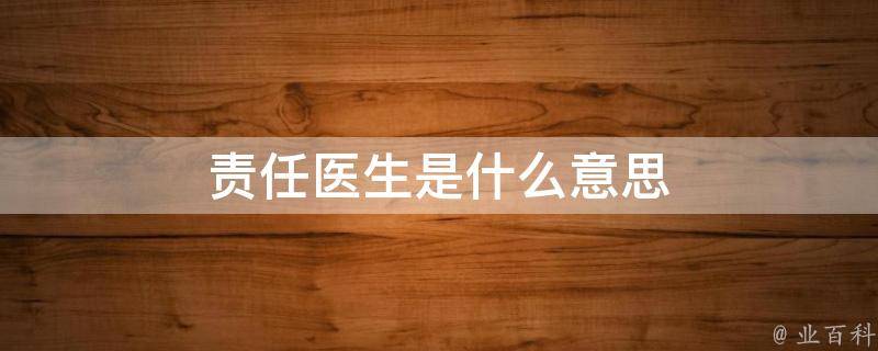 责任医生是指在特定科室或专业领域内负责患者治疗的医生。责任医生通常是该领域内的专家,能够为患者提供专业的医疗服务和治疗建议。责任医生在指定期间负责解决病人的所有医疗问题,负责完成病人的全程护理,其中包括诊断、治疗和指导康复等。
