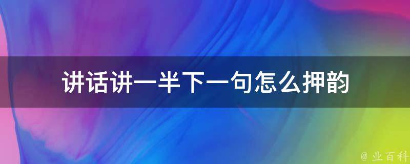 1、讲话讲一半,吃面没有蒜。2、讲话讲一半,越理线越乱。3、讲话讲一半,唱戏唱两段。4、讲话讲一半,越听理越乱。5、讲话讲一半,葱花拌大蒜。