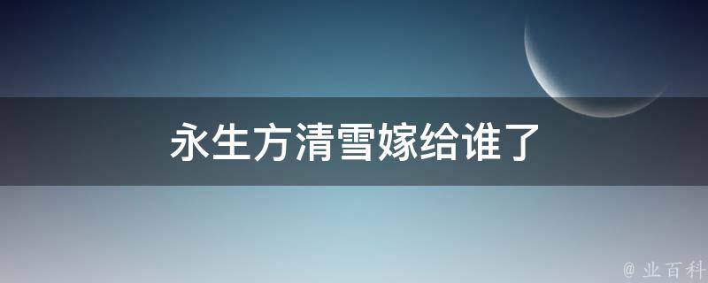 永生方清雪嫁给方寒了。方清雪一直都是除了方寒之外最强的女性修士之一,也一直助方寒修仙,最后喜欢上了方寒,随方寒一起征战仙界,随着两人的修为越来越高,击败的大敌也越来越多,二人差不多都站在了仙界顶点,最终方清雪随方寒等人进入永生之门。