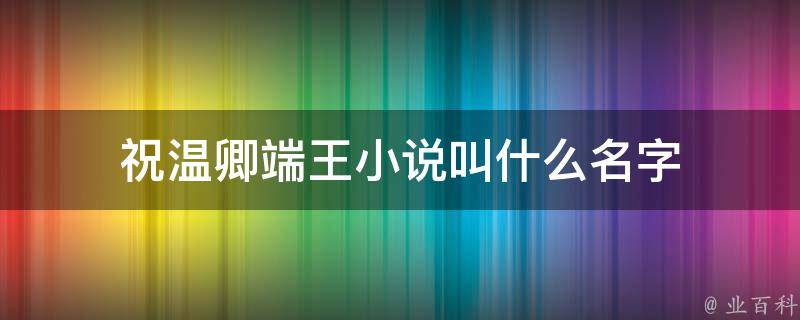 祝温卿端王小说的名字叫《成了偏执世子的白月光》,作者是栖崽,小说讲述了祝温卿自幼失恃,养在外祖父镇国公府里,因母亲生前遗愿返回上京,岂料在回京途中做了一个预知的梦。小说可以在叮吉小说网、晋江文学城、书满屋、笔趣屋、恋上你看书网等平台阅读。