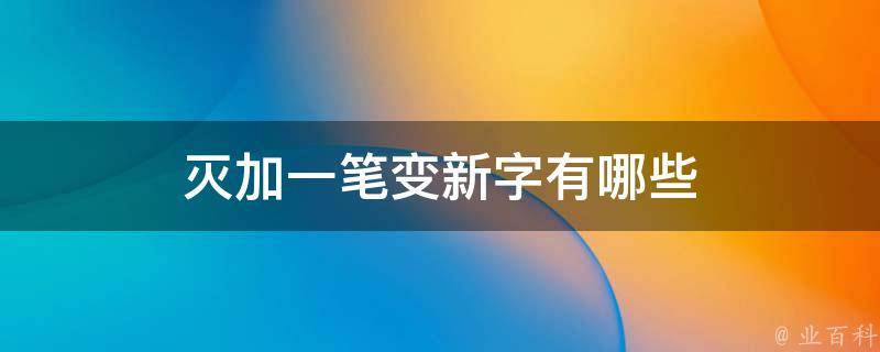灭加一笔变新字只有灰。汉字是根据事物的形态转化而成的,通常一个字上就能看出所代表事物的形态来,比如灭字,能看出是火的头上盖了一根木头,自然就熄灭了,而灰字则是在火字头上加一根木头的情况下又加了一条斜杠,火烧木头必然是有痕迹的,不是一下子完全灭掉的,自然就形成了灰,最后烧完了才是灰烬。