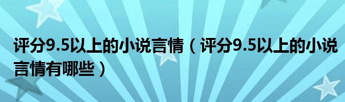 各位网友们好,我是编辑小夏,为大家解答评分9.5以上的小说言情,评分9.5以上的小说言情有哪些问题。一起往下看看