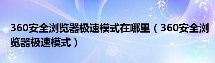 360安全浏览器极速模式在哪里(360安全浏览器极速模式)