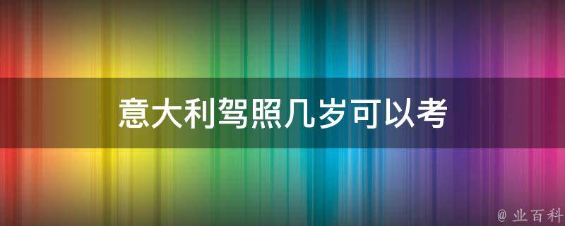 意大利驾照最低18岁可以考,但申请城市公交车、中型客车、大型货车、轻型牵引挂车、无轨电车或者有轨电车准驾车型的,年龄在20周岁以上。申请大型客车、重型牵引挂车准驾车型的,年龄在22周岁以上。接受全日制驾驶职业教育的学生,申请大型客车、重型牵引挂车准驾车型的,年龄在19周岁以上。