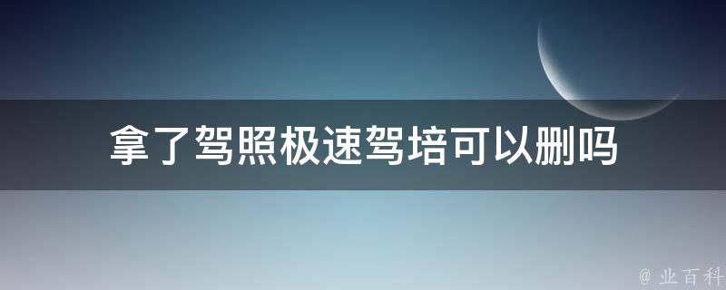 拿了驾照极速驾培可以删。极速驾培是一款基于手机移动平台的学车软件,旨在为用户提供新的、更加便捷的学车体验。极速驾培应用软件主要包括四个功能模块:约课服务、课程教学、模拟考试和学车指导。