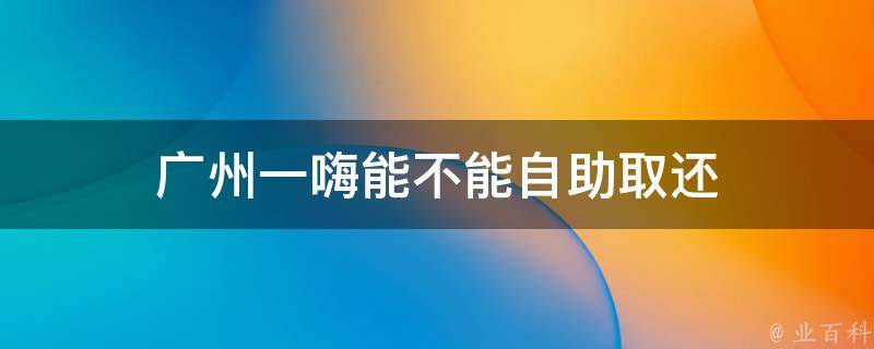 最佳答案广州一嗨能自助取还。一嗨租车推出的自助取还服务,依托移动互联网技术,用户打开一嗨租车APP,选择带有自助取还的车型,按正常流程完成下单,即可体验自助取还服务。这种服务不仅方便快捷,还可以大大降低用户租车的成本。