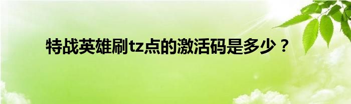 大家好,小华来为大家解答以上的问题。特战英雄刷tz点的激活码是多少?这个很多人还不知道,现在让我们一起来看看吧!