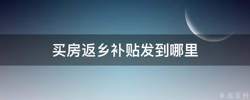 买房返乡补贴一般发放到指定的银行卡账户中。在申请购房补贴的时候,申请人需要填写自己的银行账户信息,例如银行卡号等。当补贴资金审核通过后,政府会将补贴资金直接打入申请人指定的银行账户中。不同的地区和政策可能会有不同的补贴标准和要求,具体信息可以咨询当地的政府部门或相关机构。