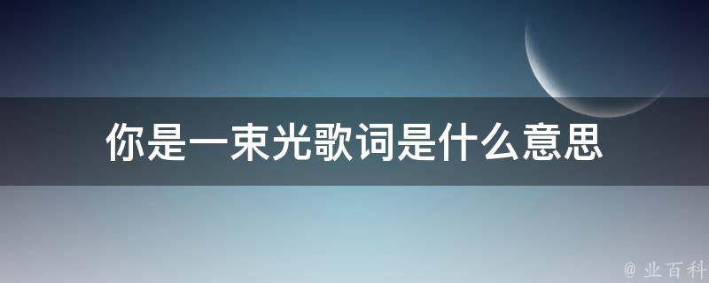 《你是一束光》歌词的意思是:表达了对老师和父母的爱,他们就像一道光一样,为自己照明了前进的道路。《你是一束光》是刘艺演唱的一首歌曲,歌词节选:每当我徘徊在十字路口,总有一个声音,指引我前进方向,每当我身处黑暗境地,总有一束光,照耀在我身上。