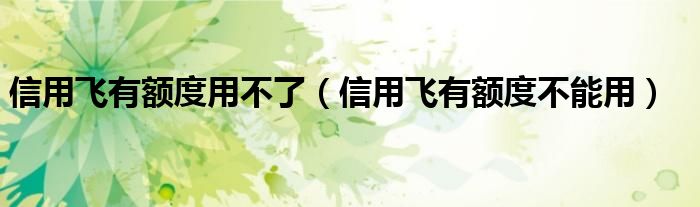 大家好,我是小科,我来为大家解答以上问题。信用飞有额度用不了,信用飞有额度不能用很多人还不知道,现在让我们一起来看看吧!