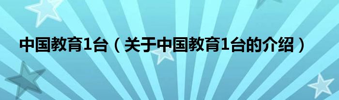 大家好,小夏来为大家解答以上的问题。中国教育1台,关于中国教育1台的介绍很多人还不知道,现在让我们一起来看看吧!