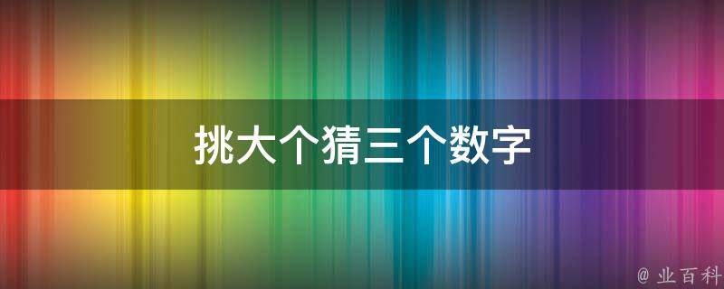挑大个猜三个数字是933,因为挑有九画,而大个均有3画,所以,挑大个猜三个数字是933。在数字谐音中,9代表久、就、求,3代表想念、生命、生活。另外,0代表圆满、完美、无尽;1代表唯一、你、起点;2代表爱、两人世界。