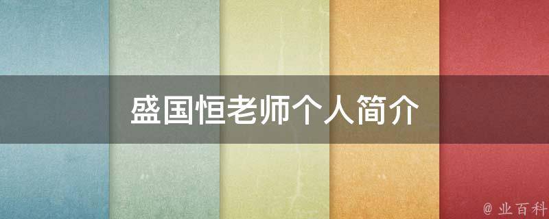 盛国恒,中国青年慈善家、深圳市云妙禅文化产业有限公司董事长。致力于传承和弘扬中华优秀传统文化,将国学精髓与新时代特点相容,以文养商,帮助中小型企业家提升事业成就和生命品质,提升企业家自我经营理念与优化企业发展模式。针对企业板块,盛国恒拥有七年企业战略理论研究和实践工作经验,专注于企业发展战略规划和员工管理。