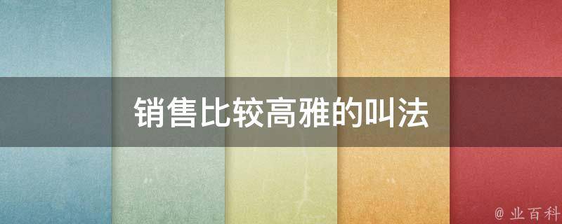 销售比较高雅的叫法有业务员、促销员、销售代表等。销售就是把我们自己的产品推荐给别人,通过产品特点,优势等,让别人来购买你的产品,当然,现在的产品有虚拟的,也有实物的,虚拟的一般指网络、服务这些看不见摸不着的东西,而实物就是我们看得到、摸得到的实实在在的东西。