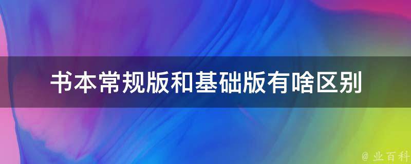 书本常规版和基础版的区别主要是内容深度不同。常规版相对于基础版在内容深度上更加全面和深入,通常会包含更多的知识点、更多的例题和习题,以满足学生对数学知识的全面掌握和深度理解的需求。常规版更加注重知识的系统和全面性,适合大部分学生使用;而基础版更加注重基础知识的讲解和练习,适合基础较差或需要巩固基础的学生使用。