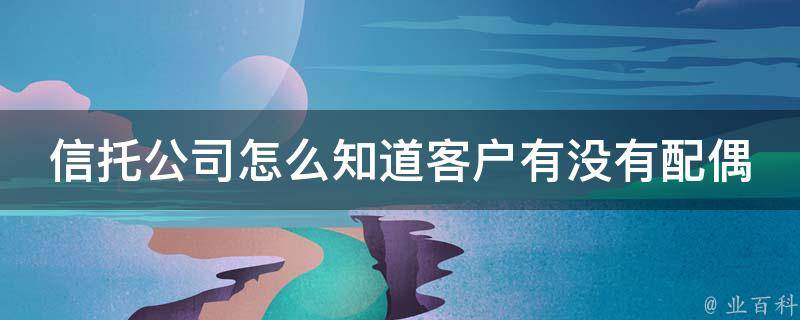 3、与客户的交流:在与客户建立关系的过程中,信托公司可以通过与客户交流来了解其婚姻状况。例如,当客户在办理信托业务时提及自己的配偶或家庭成员,信托公司可以通过这种方式来判断客户是否已婚。