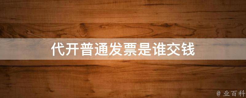 代开普通发票是付款方交钱。个人不能申请开具增值税专用发票,增值税专用发票是开具给一般纳税人用于抵扣的发票,所以个人只能开具增值税普通发票,税率为3%,也就是小规模纳税人(含未认定为一般纳税人的个体户)适用3%的增值税征收率。