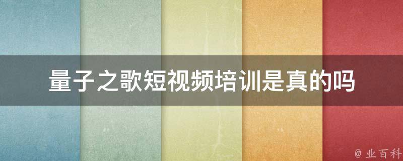 最佳答案量子之歌短视频培训是真的。量子之歌短视频培训是帮助剪辑爱好者、自媒体从业者等人群敲开短视频创作大门,是真实存在的,但是需要付费,而且还需要学习者有一定的领悟力,要量力而行。量子之歌短视频培训是一个专业的视频剪辑培训课程,旨在帮助学习者掌握视频剪辑的基本技能,以及更深入的视频剪...