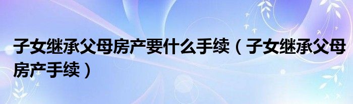 大家好,我是小科,我来为大家解答以上问题。子女继承父母房产要什么手续,子女继承父母房产手续很多人还不知道,现在让我们一起来看看吧!