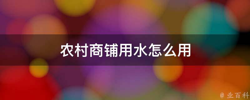 农村商铺用水,需要安装水表,按计量收费。农村供水价格机制方面,农村居民生活用水按照促进节约、补偿成本、公平负担、保障运行的原则制定价格,非居民用水按照适当盈利的原则制定价格,总体价格水平原则上不高于所在城镇。