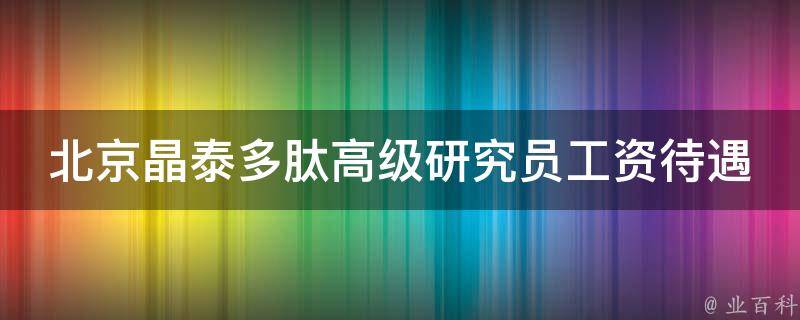 北京晶泰多肽高级研究员工资待遇